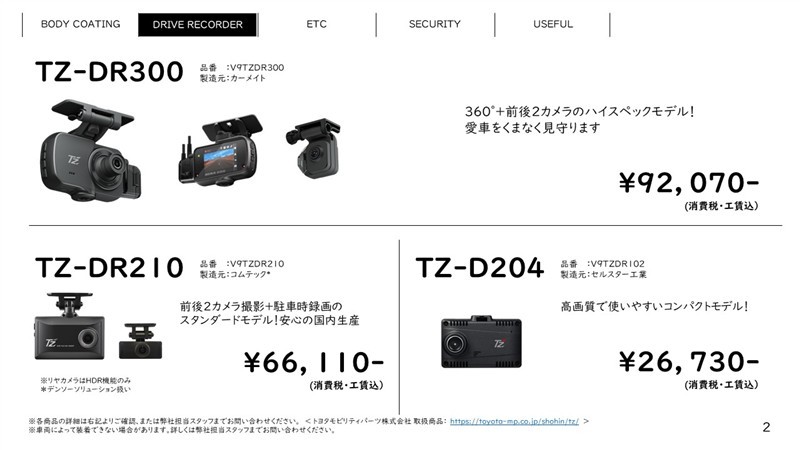 | パノラミックビューモニター (全周囲カメラ) | - | ドライブレコーダー | ○ ※記録媒体(SDカード等)は別途ご購入いただく場合がございます |