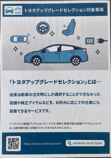 - 表示項目・方法・運用体制等について、自動車公正取引協議会の定める基準を満たした「トヨタU-Car品質評価制度」に基づき作成しております。