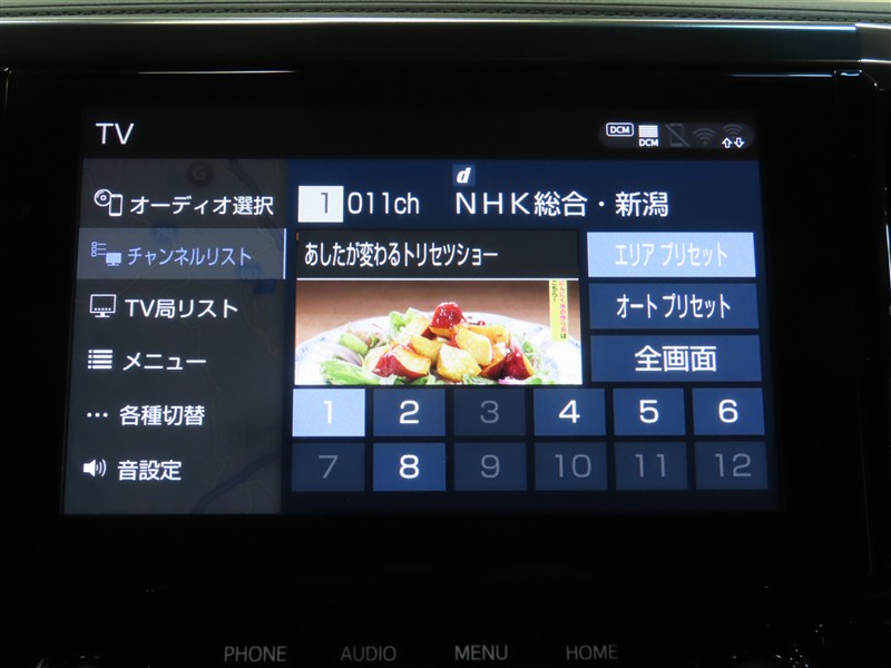 | カーナビ/DA | メモリーナビ(IN) またはナビ付きDA | TV | 地デジ(フルセグ) |