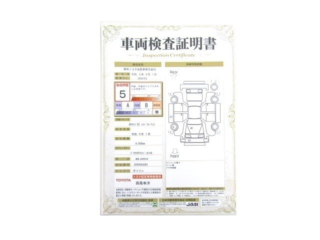 詳細及び現状の車両状態につきましては、店舗スタッフまでお尋ねください。 - 注2)上記と同様の評価点・状態表を「車両検査証明書」として店舗の展示車両に搭載しております。