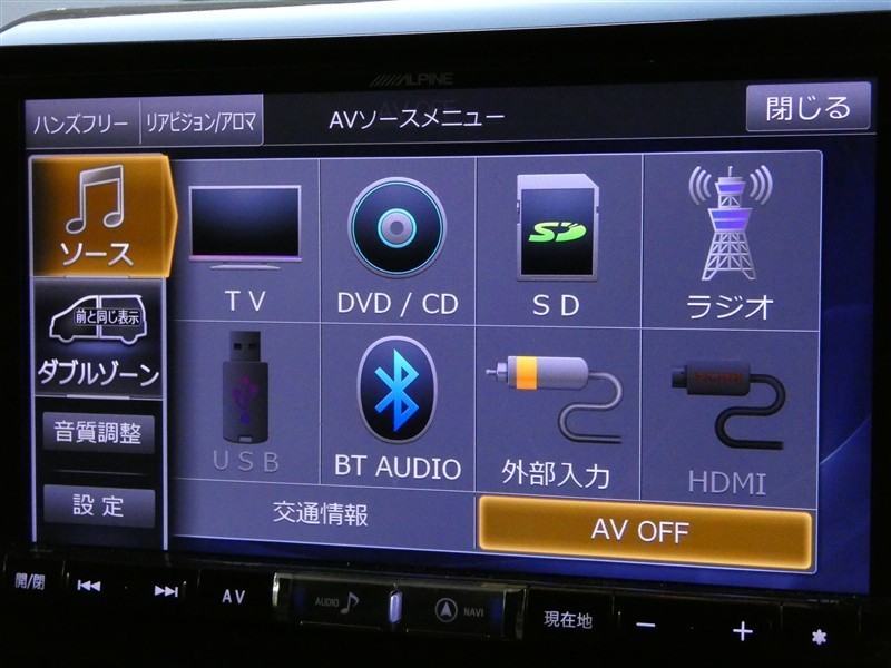 | カーナビ/DA | メモリーナビ(IN) またはナビ付きDA | TV | 地デジ(フルセグ) |