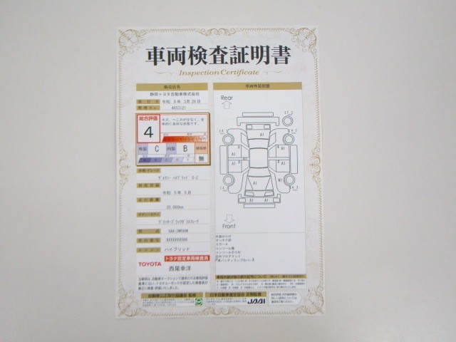 詳細及び現状の車両状態につきましては、店舗スタッフまでお尋ねください。 - 注2)上記と同様の評価点・状態表を「車両検査証明書」として店舗の展示車両に搭載しております。