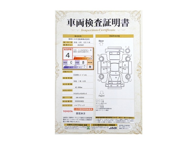 詳細及び現状の車両状態につきましては、店舗スタッフまでお尋ねください。 - 注2)上記と同様の評価点・状態表を「車両検査証明書」として店舗の展示車両に搭載しております。