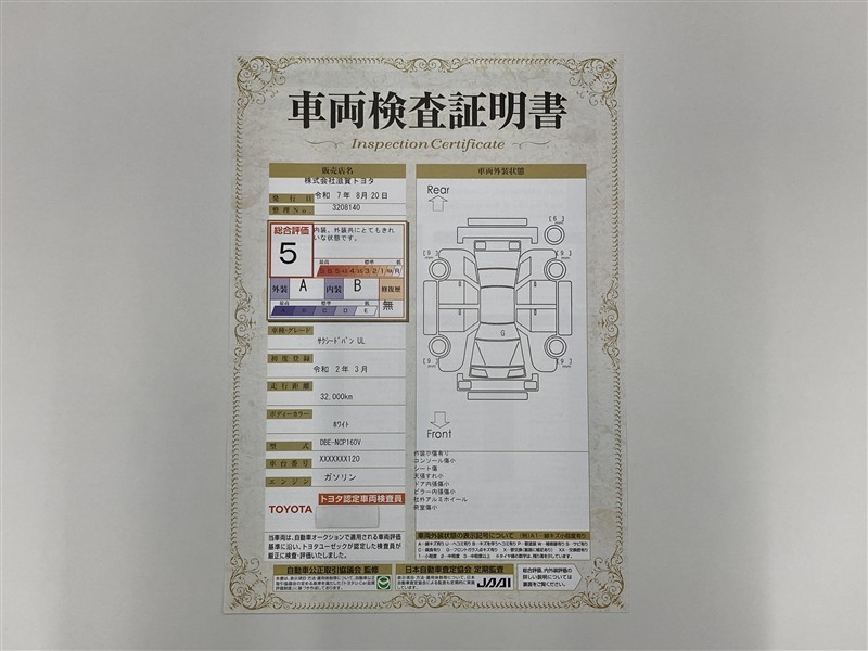詳細及び現状の車両状態につきましては、店舗スタッフまでお尋ねください。 - 注2)上記と同様の評価点・状態表を「車両検査証明書」として店舗の展示車両に搭載しております。