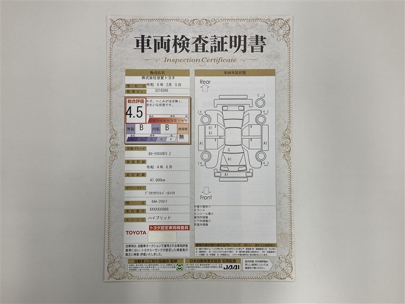 - 表示項目・方法・運用体制等について、自動車公正取引協議会の定める基準を満たした「トヨタU-Car品質評価制度」に基づき作成しております。