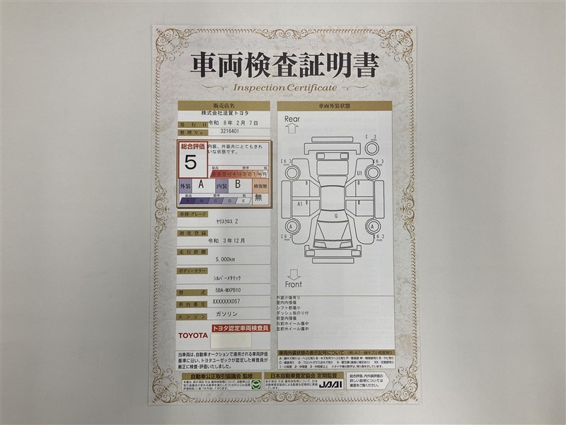 - 表示項目・方法・運用体制等について、自動車公正取引協議会の定める基準を満たした「トヨタU-Car品質評価制度」に基づき作成しております。