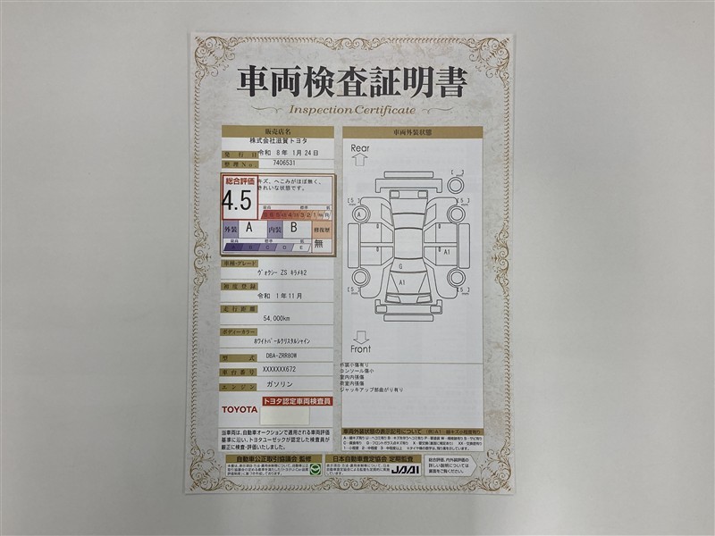 詳細及び現状の車両状態につきましては、店舗スタッフまでお尋ねください。 - 注2)上記と同様の評価点・状態表を「車両検査証明書」として店舗の展示車両に搭載しております。