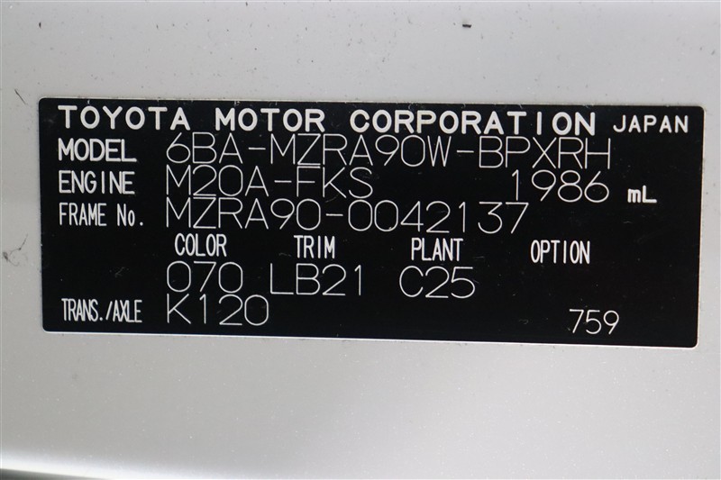 | 排気量 | 2,000cc | 全高 | 189cm |