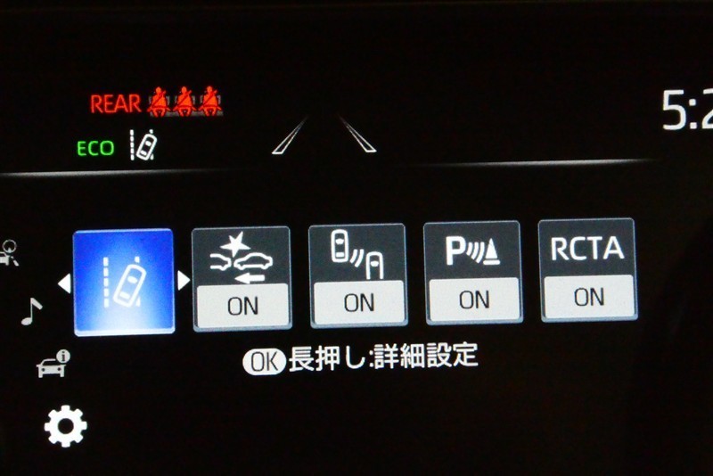 | 衝突被害軽減ブレーキ | Toyota Safety Sense・ Lexus Safety Systemの プリクラッシュセーフティ (対車両・歩行者) | ペダル踏み間違い 急発進抑制装置 | インテリジェントクリアランスソナー・ スマートアシスト |