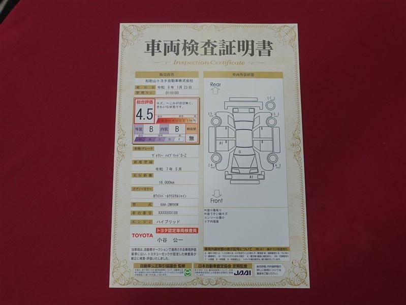 詳細及び現状の車両状態につきましては、店舗スタッフまでお尋ねください。 - 注2)上記と同様の評価点・状態表を「車両検査証明書」として店舗の展示車両に搭載しております。