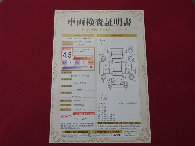- 表示項目・方法・運用体制等について、自動車公正取引協議会の定める基準を満たした「トヨタU-Car品質評価制度」に基づき作成しております。