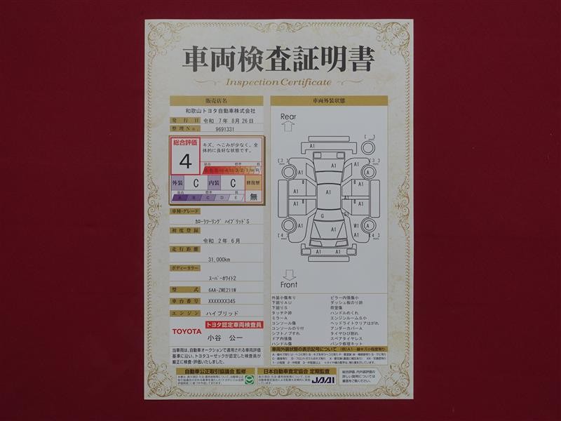 詳細及び現状の車両状態につきましては、店舗スタッフまでお尋ねください。 - 注2)上記と同様の評価点・状態表を「車両検査証明書」として店舗の展示車両に搭載しております。