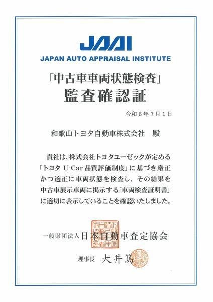 - 表示項目・方法・運用体制等について、自動車公正取引協議会の定める基準を満たした「トヨタU-Car品質評価制度」に基づき作成しております。