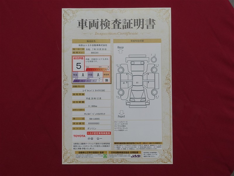 詳細及び現状の車両状態につきましては、店舗スタッフまでお尋ねください。 - 注2)上記と同様の評価点・状態表を「車両検査証明書」として店舗の展示車両に搭載しております。