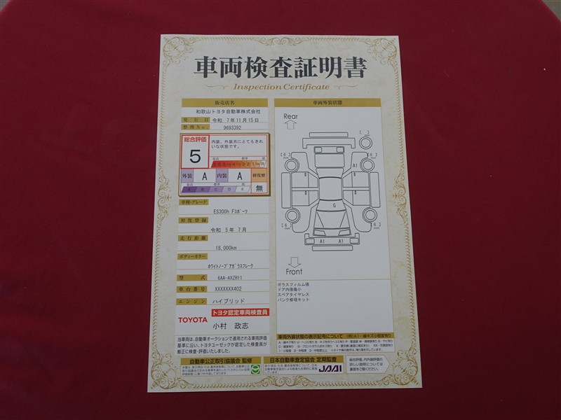 詳細及び現状の車両状態につきましては、店舗スタッフまでお尋ねください。 - 注2)上記と同様の評価点・状態表を「車両検査証明書」として店舗の展示車両に搭載しております。