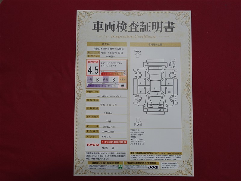 詳細及び現状の車両状態につきましては、店舗スタッフまでお尋ねください。 - 注2)上記と同様の評価点・状態表を「車両検査証明書」として店舗の展示車両に搭載しております。
