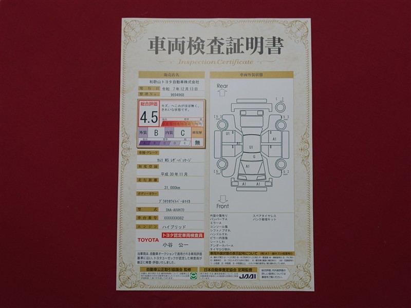 - 注1)本ページに掲載された評価は、車両検査実施時の車両状態を示したものです。