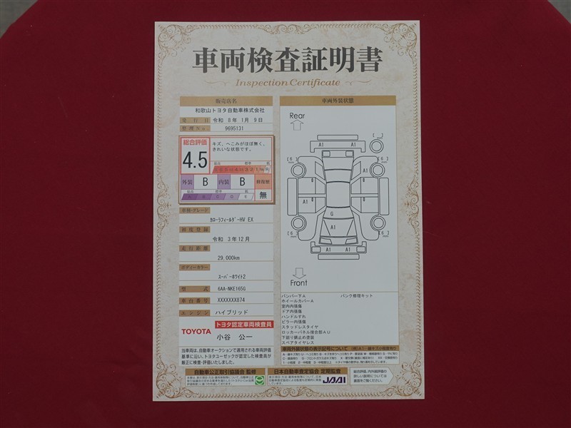 詳細及び現状の車両状態につきましては、店舗スタッフまでお尋ねください。 - 注2)上記と同様の評価点・状態表を「車両検査証明書」として店舗の展示車両に搭載しております。