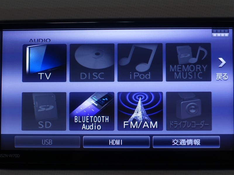 | カーナビ/DA | メモリーナビ(IN) またはナビ付きDA | TV | 地デジ(フルセグ) |