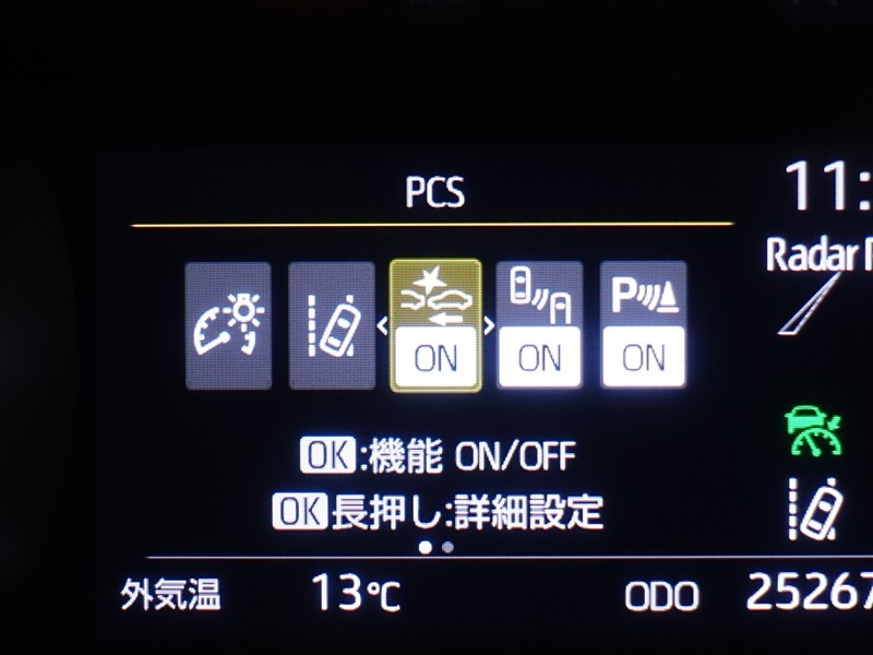- 予防安全装置の各機能の作動には、速度や対象物等の条件があります。また、道路状況、車両状態、天候等により作動しない場合があります。
