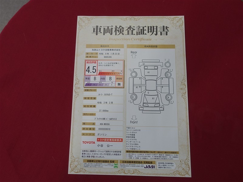詳細及び現状の車両状態につきましては、店舗スタッフまでお尋ねください。 - 注2)上記と同様の評価点・状態表を「車両検査証明書」として店舗の展示車両に搭載しております。