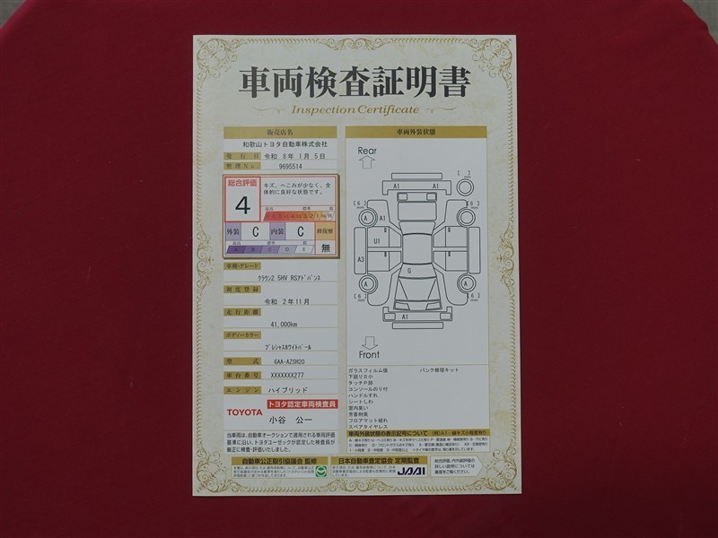 詳細及び現状の車両状態につきましては、店舗スタッフまでお尋ねください。 - 注2)上記と同様の評価点・状態表を「車両検査証明書」として店舗の展示車両に搭載しております。