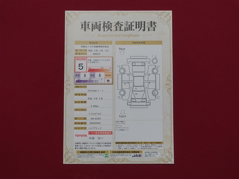 - 表示項目・方法・運用体制等について、自動車公正取引協議会の定める基準を満たした「トヨタU-Car品質評価制度」に基づき作成しております。