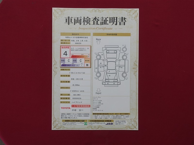 詳細及び現状の車両状態につきましては、店舗スタッフまでお尋ねください。 - 注2)上記と同様の評価点・状態表を「車両検査証明書」として店舗の展示車両に搭載しております。