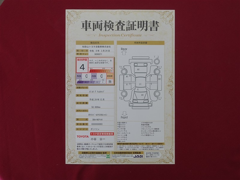 - 表示項目・方法・運用体制等について、自動車公正取引協議会の定める基準を満たした「トヨタU-Car品質評価制度」に基づき作成しております。