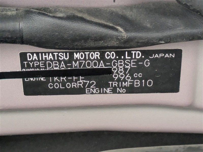 店舗管理ナンバー【072019501281】車台番号(下3桁)【987】