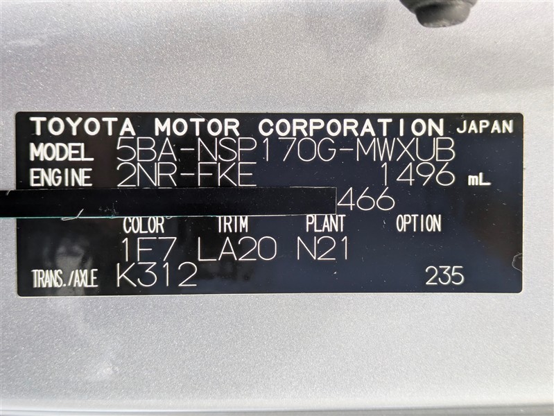 店舗管理ナンバー【072019501795】車台番号(下3桁)【466】