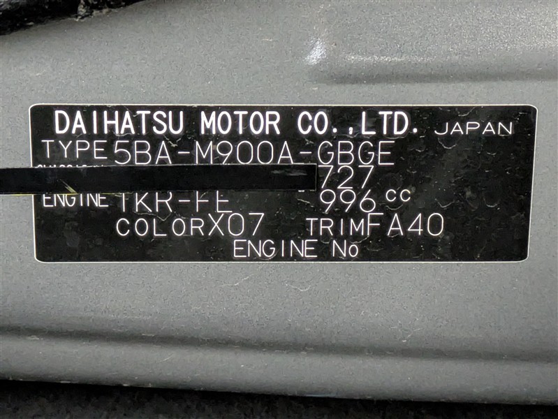 店舗管理ナンバー【072019508315】車台番号(下3桁)【727】