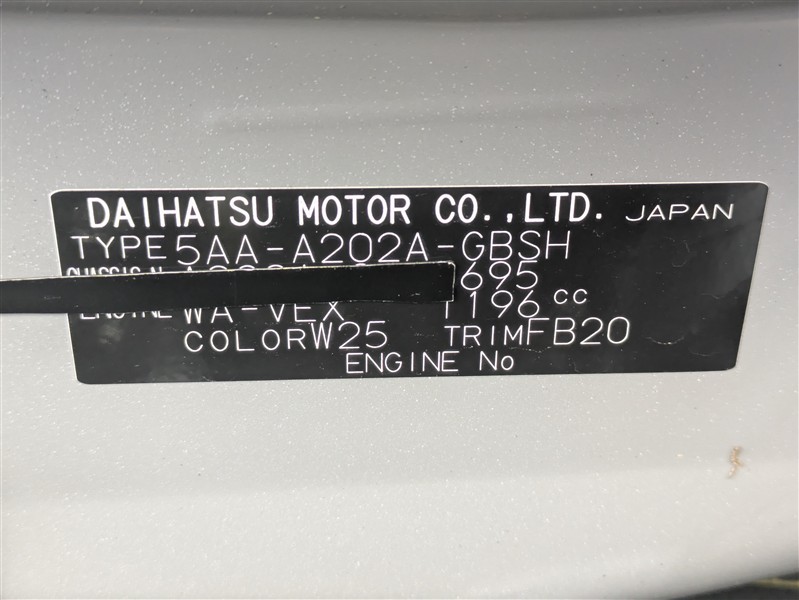 店舗管理ナンバー【072019599515】車台番号(下3桁)【695】
