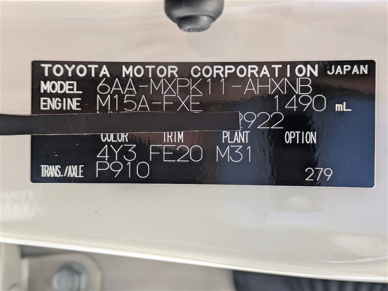 店舗管理ナンバー【072019599922】車台番号(下3桁)【922】