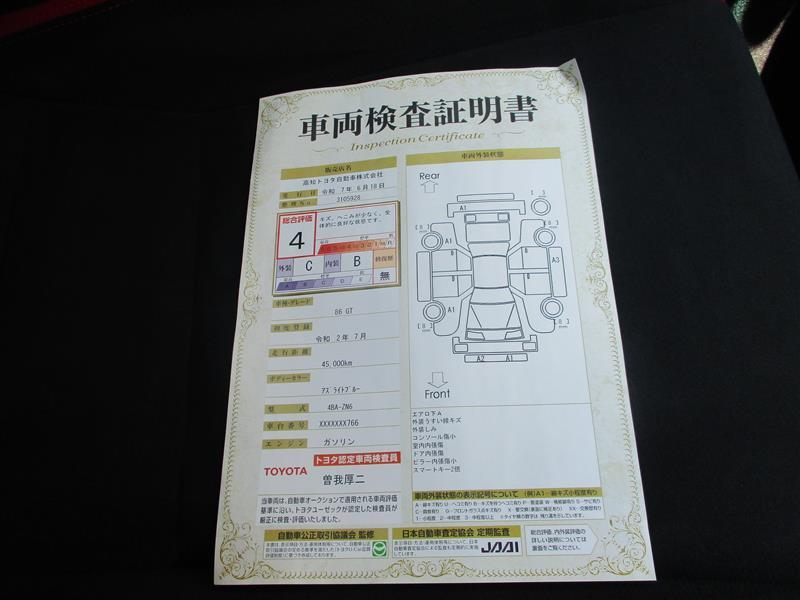 詳細及び現状の車両状態につきましては、店舗スタッフまでお尋ねください。 - 注2)上記と同様の評価点・状態表を「車両検査証明書」として店舗の展示車両に搭載しております。