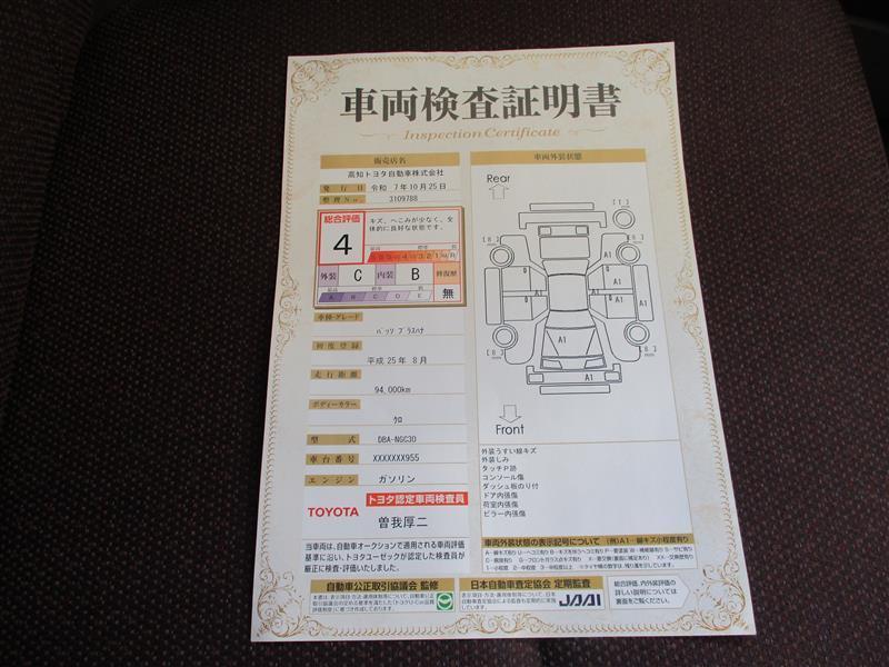 詳細及び現状の車両状態につきましては、店舗スタッフまでお尋ねください。 - 注2)上記と同様の評価点・状態表を「車両検査証明書」として店舗の展示車両に搭載しております。