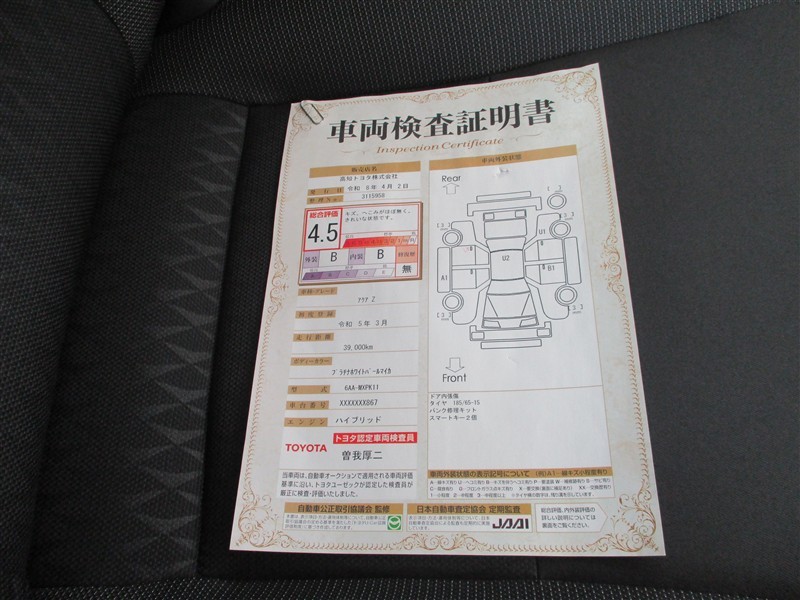 詳細及び現状の車両状態につきましては、店舗スタッフまでお尋ねください。 - 注2)上記と同様の評価点・状態表を「車両検査証明書」として店舗の展示車両に搭載しております。