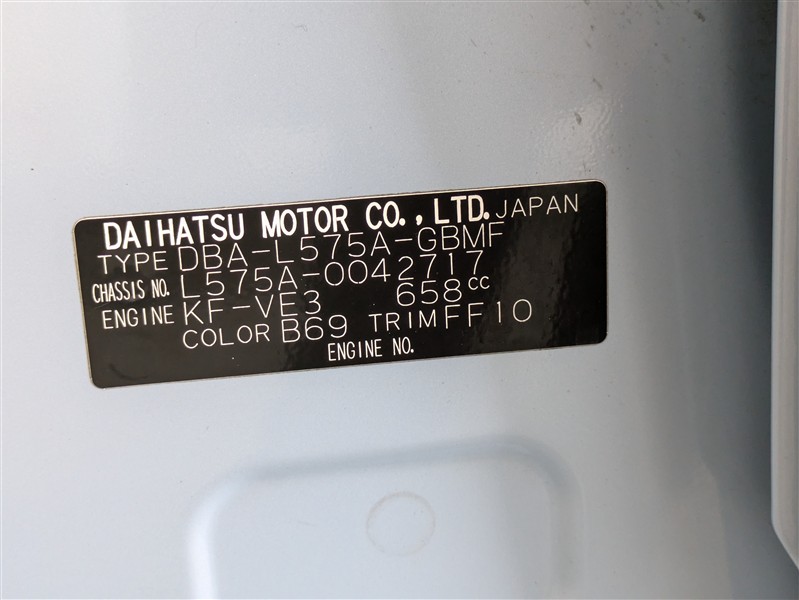 店舗管理ナンバー【091013244014】車台番号(下3桁)【717】
