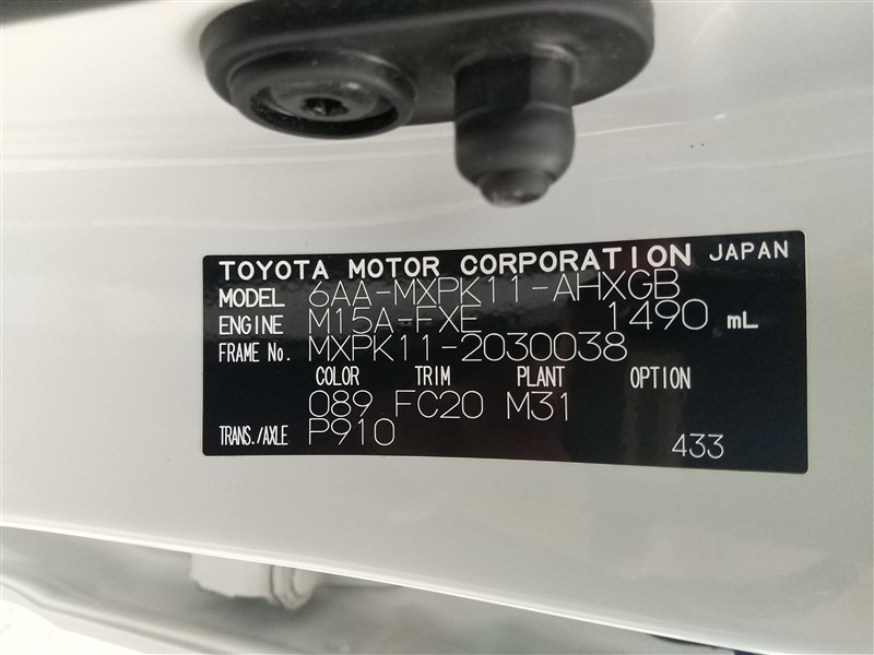 店舗管理ナンバー【091013244430】車台番号(下3桁)【038】