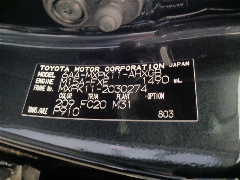 店舗管理ナンバー【091013250111】車台番号(下3桁)【274】