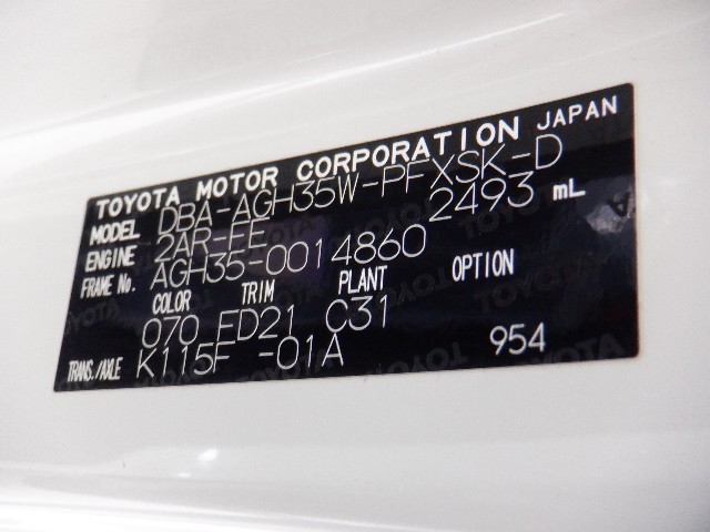 店舗管理ナンバー【121013169136】車台番号(下3桁)【860】
