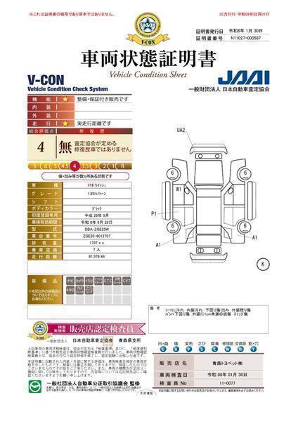 - 「定期点検整備なし(要整備箇所あり)」の場合、整備箇所につきましては、販売店へお問合せください。