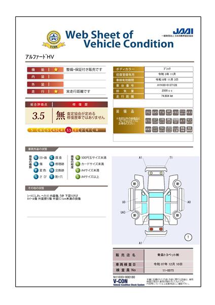 | 走行距離 | 75,000km | 修復歴 | なし |