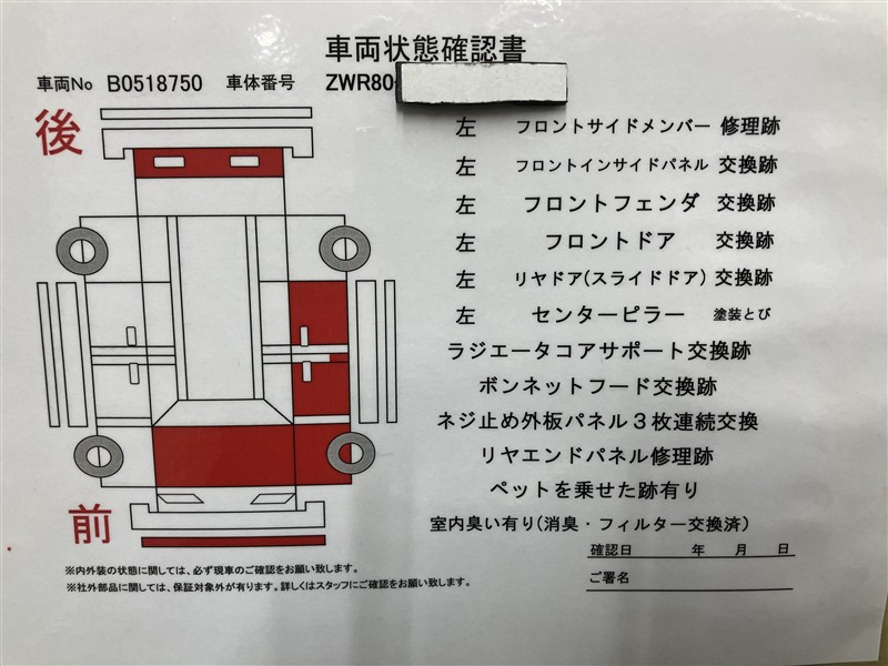- 「修復歴あり」の場合、修復部位の詳細につきましては、販売店へお問合せください。