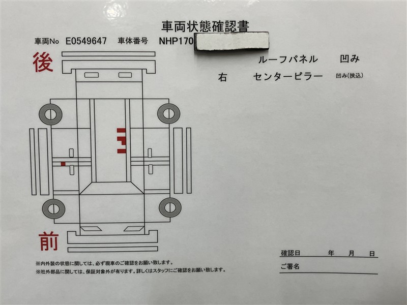 - 「定期点検整備なし(要整備箇所あり)」の場合、整備箇所につきましては、販売店へお問合せください。