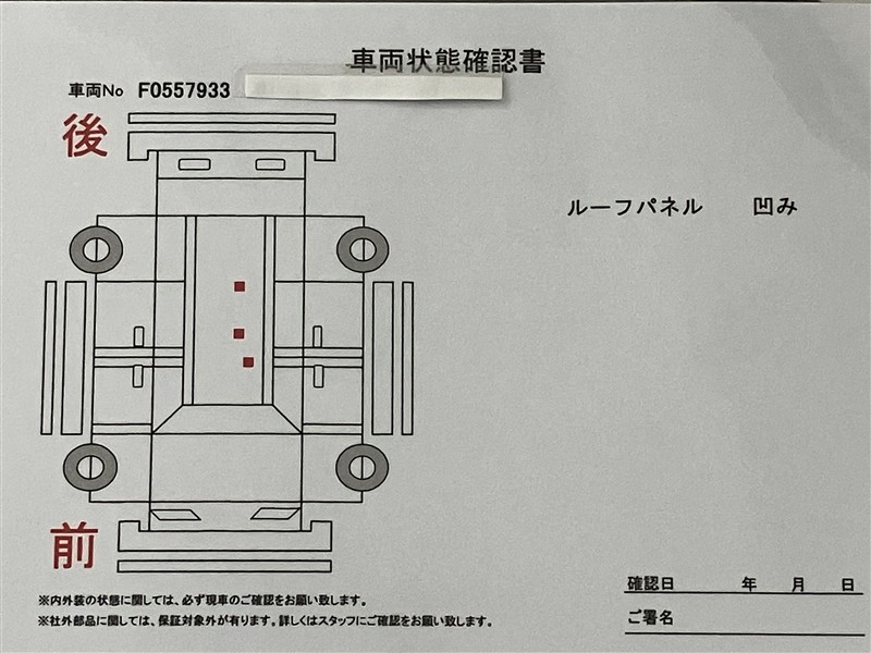 - 「定期点検整備なし(要整備箇所あり)」の場合、整備箇所につきましては、販売店へお問合せください。