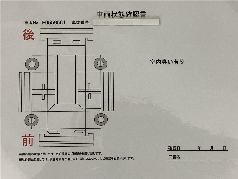- 「定期点検整備なし(要整備箇所あり)」の場合、整備箇所につきましては、販売店へお問合せください。