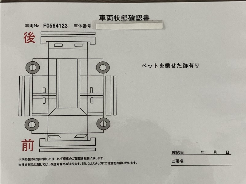- 「定期点検整備なし(要整備箇所あり)」の場合、整備箇所につきましては、販売店へお問合せください。