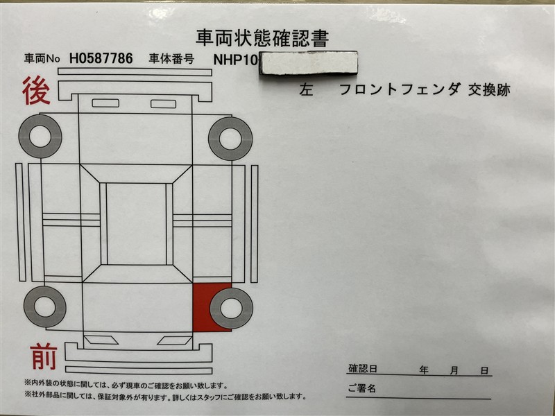 詳細及び現状の車両状態につきましては、店舗スタッフまでお尋ねください。 - 注2)上記と同様の評価点・状態表を「車両検査証明書」として店舗の展示車両に搭載しております。