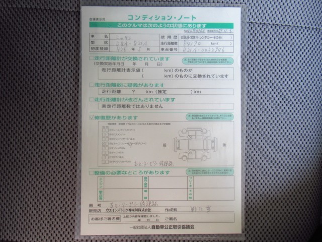 - 「定期点検整備なし(要整備箇所あり)」の場合、整備箇所につきましては、販売店へお問合せください。
